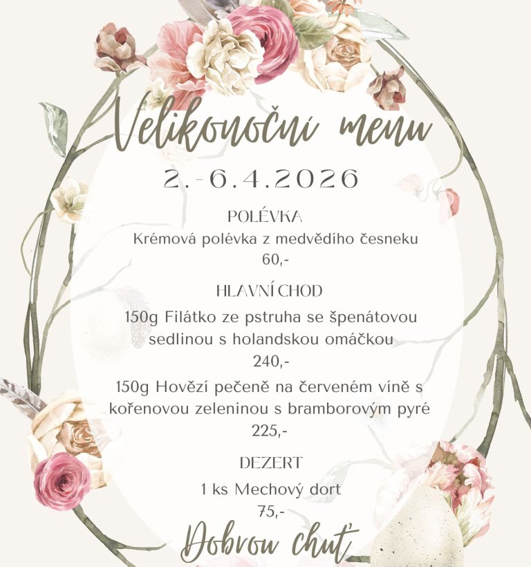 Zpříjemněte si svátky návstěvou našeho originálního hotelu s velikonočním menu.![]()
